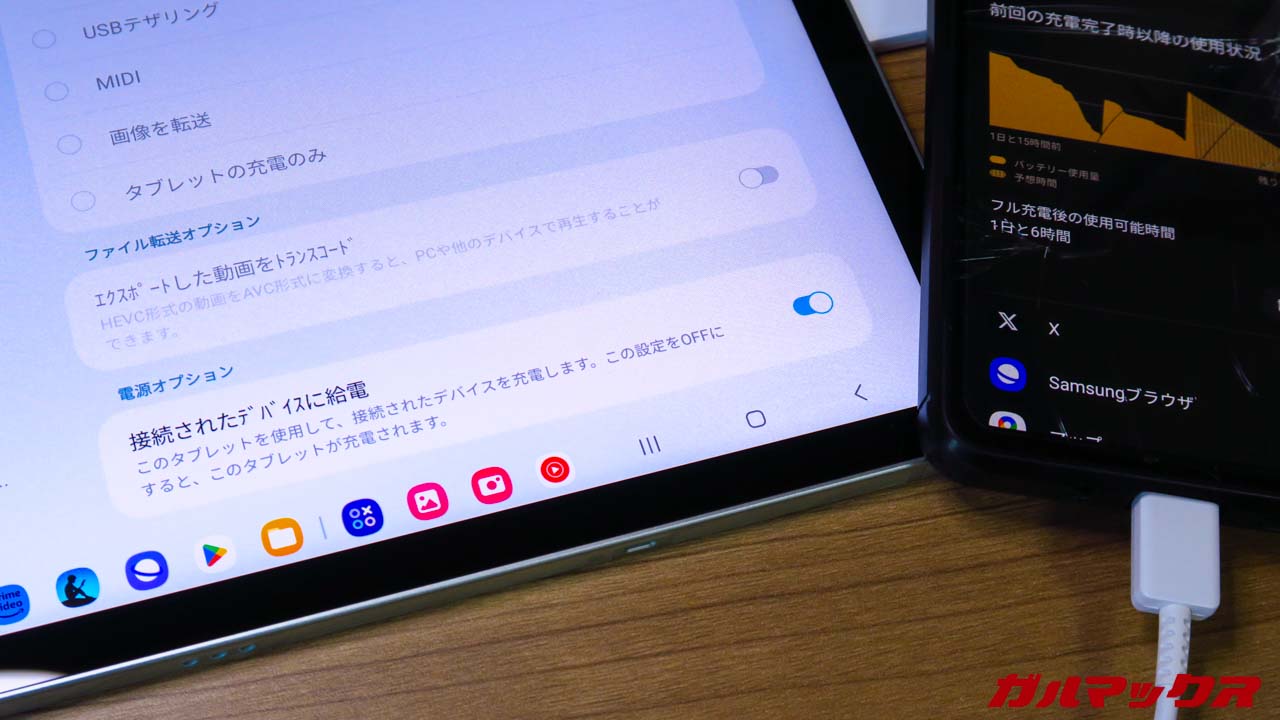 ▼あとこのモデルは逆充電も出来るんで、付属のケーブルを使えば8,000mAhのモバイルバッテリーにもなります。なお逆充電は急速充電に非対応でした。↓
