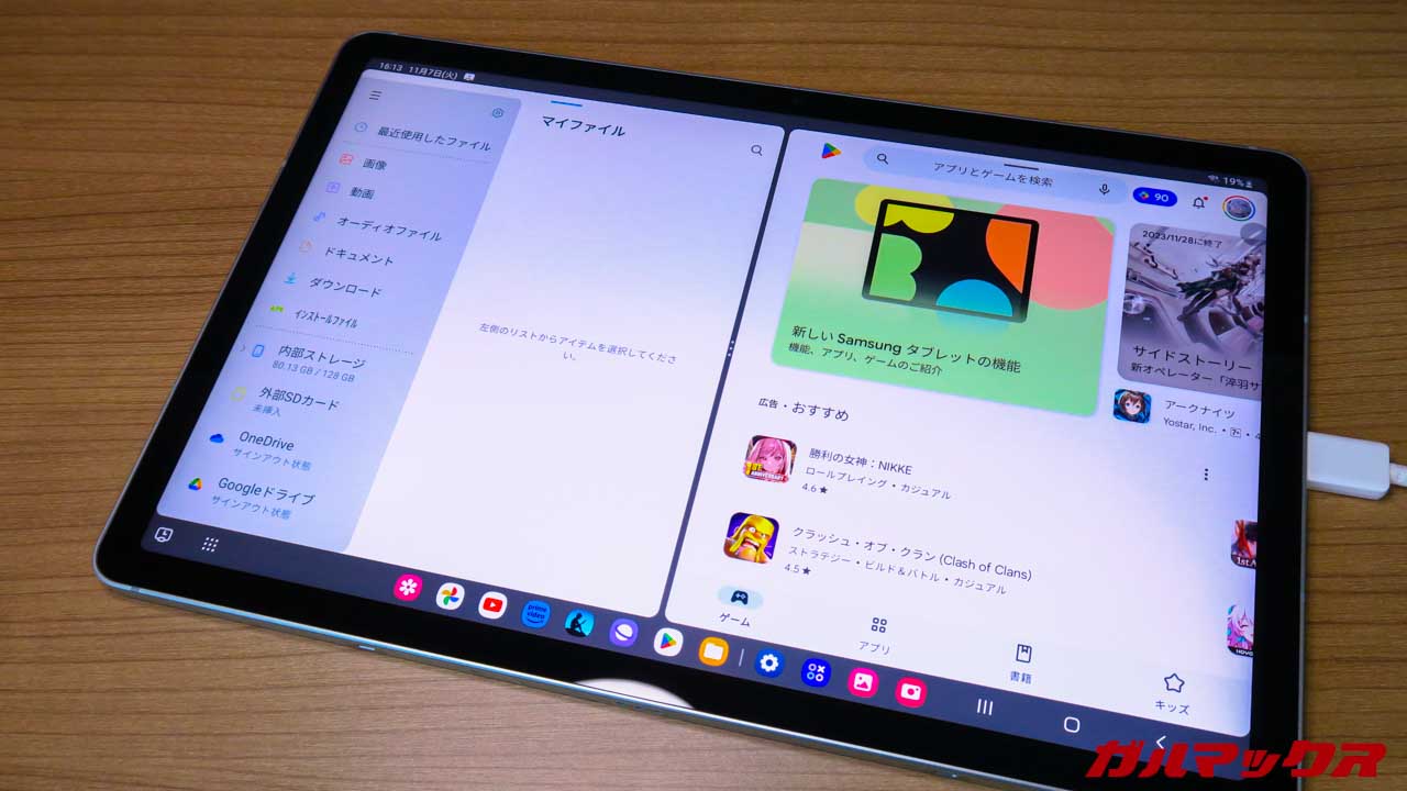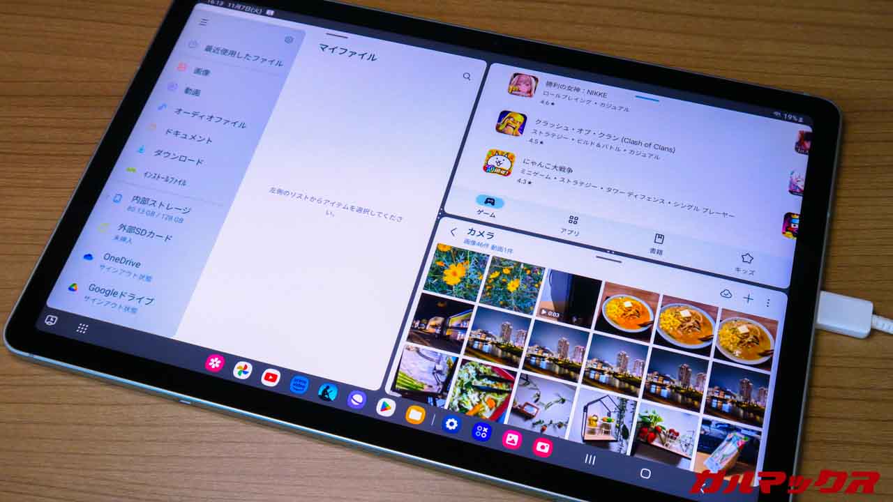 加えてSoCもミドルハイ性能はあるので、Galaxy Tab A9+ではやや厳しかったマルチタスク場面やSamsung DeXもサクサク動きます。起動自体も4~5秒ほどと早め。