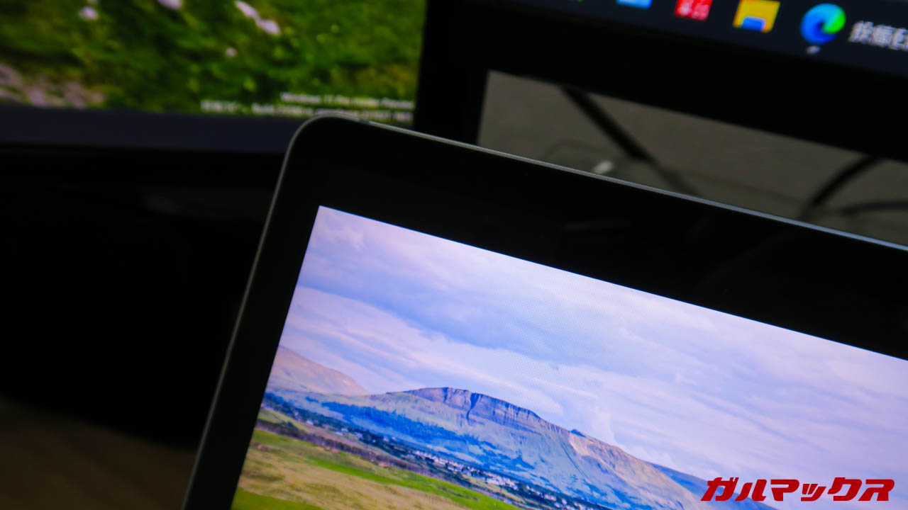 ▼ただあちらに比べて明らかに視認性が上がってます。最大輝度は600ニトと明るく、解像度は2,304×1,440。そのため文字のクッキリ感が非常に感じられて見栄えの良さは満足!↓