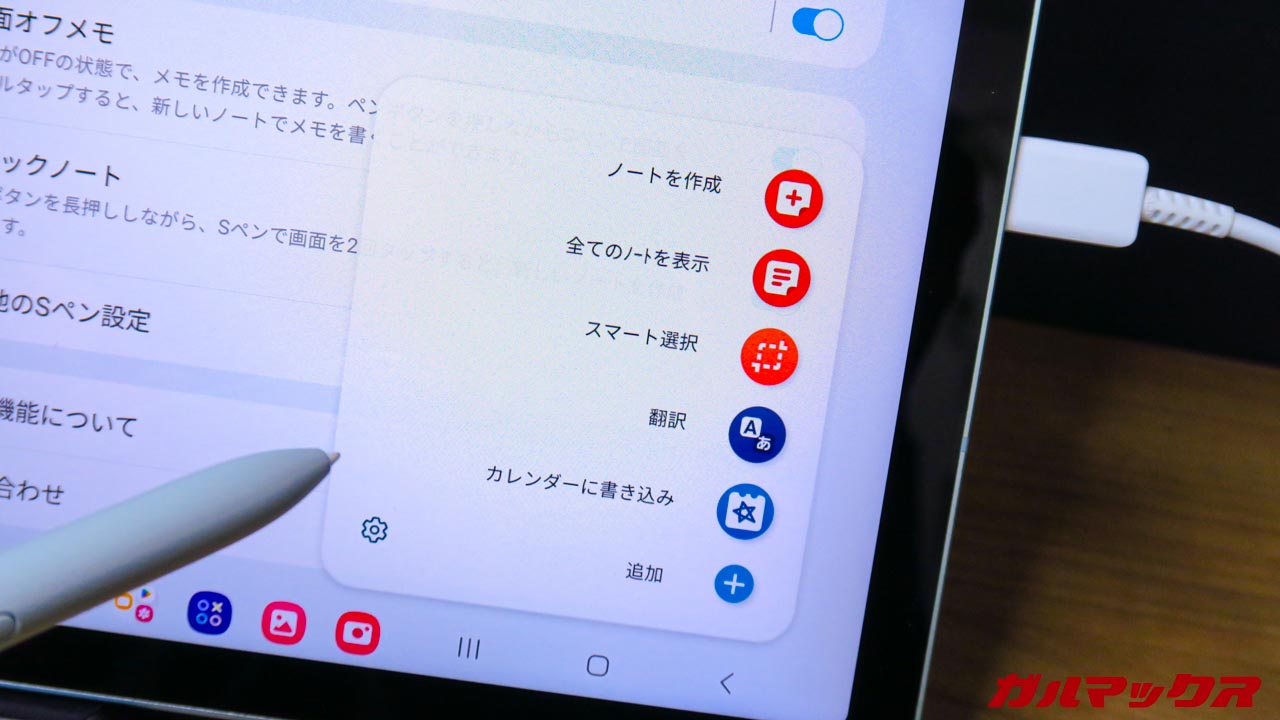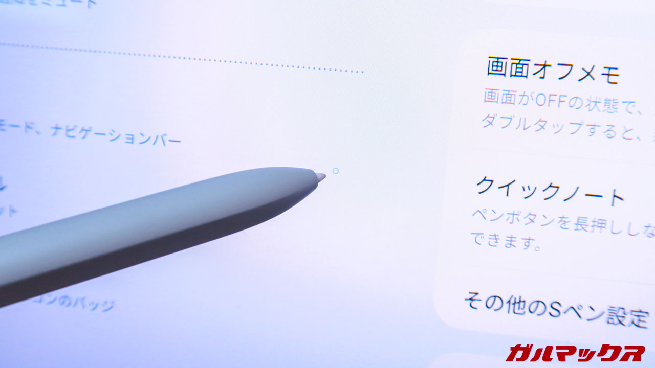 ただしGalaxy NoteやUltraと違い「Sペンのボタンを押しながら画面をタッチする」という条件になってます。Noteとかは引っこ抜けばすぐメモできたので、これと比べると若干ですが面倒に感じた。