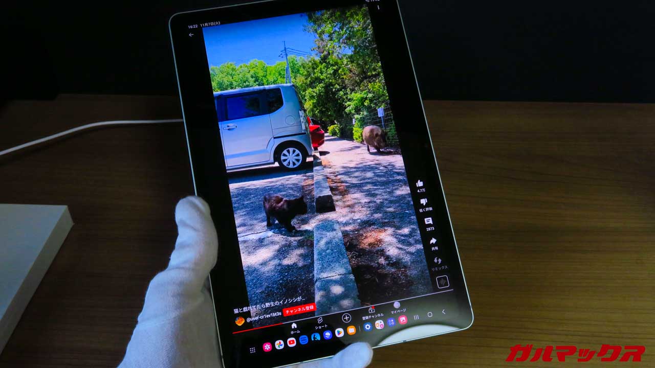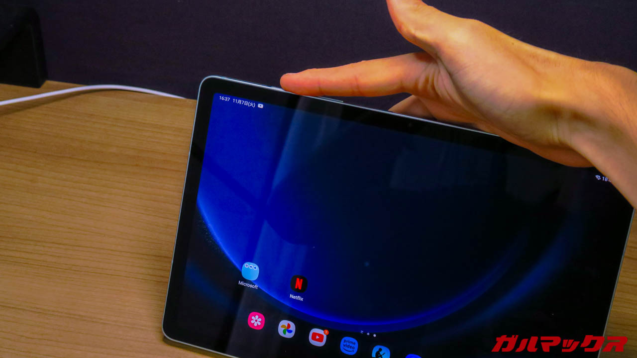 ▼画面比率は残念ながら16:9のみで変えられませんでした。なのでGalaxy Tab S9 FE本体ではこんな感じで上下にベゼルが生じます。↓