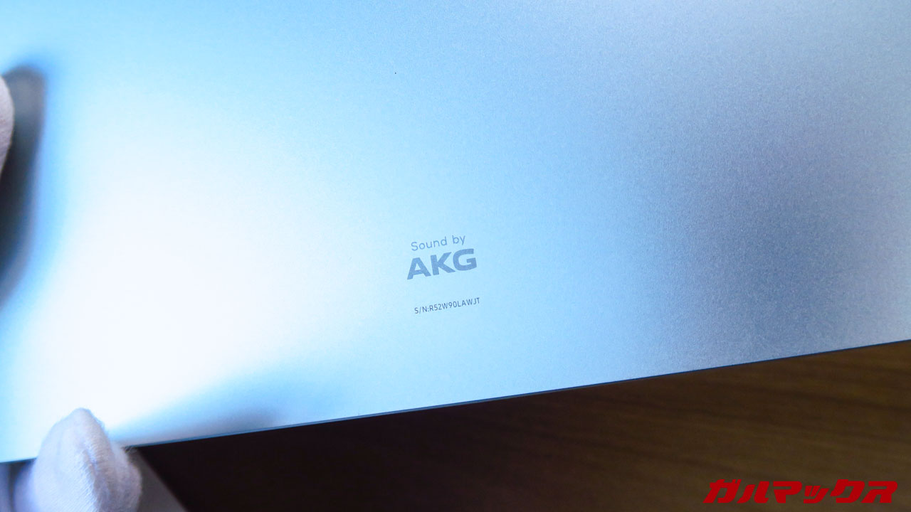 ▼スピーカーはAKGによるチューニングを施されてるという印字も施されています。↓