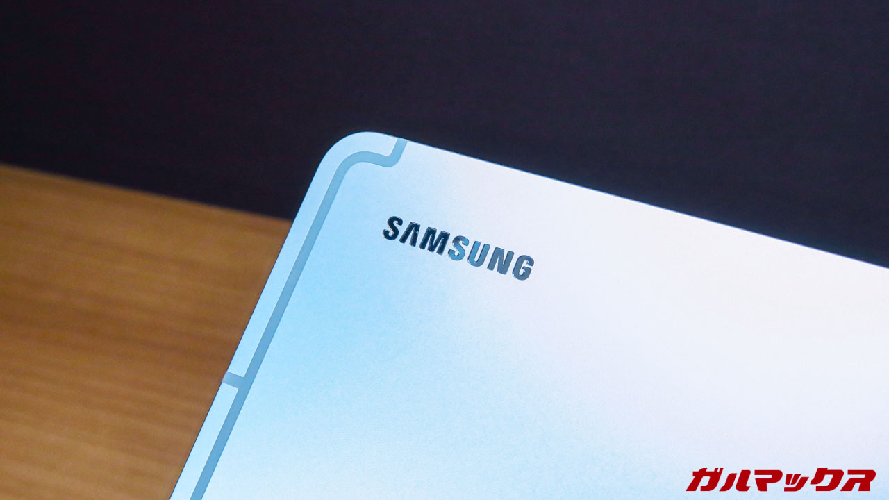 ▼SAMSUNGロゴは印字ではなく彫り込みタイプになっていました。光沢があり、マットなパネルと対比的でキラリと光るのもいいアクセントになっとりますね。↓