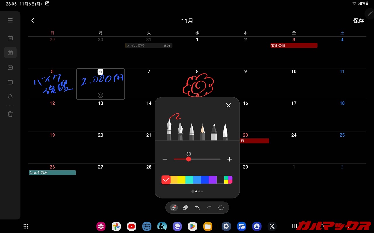▼それとプリインカレンダーアプリへの直接書き込みにも対応していました。とはいえこういうアナログな書き込みも出来るんで、サッと予定を直感的に書き込めるってのはデカいっすね。↓