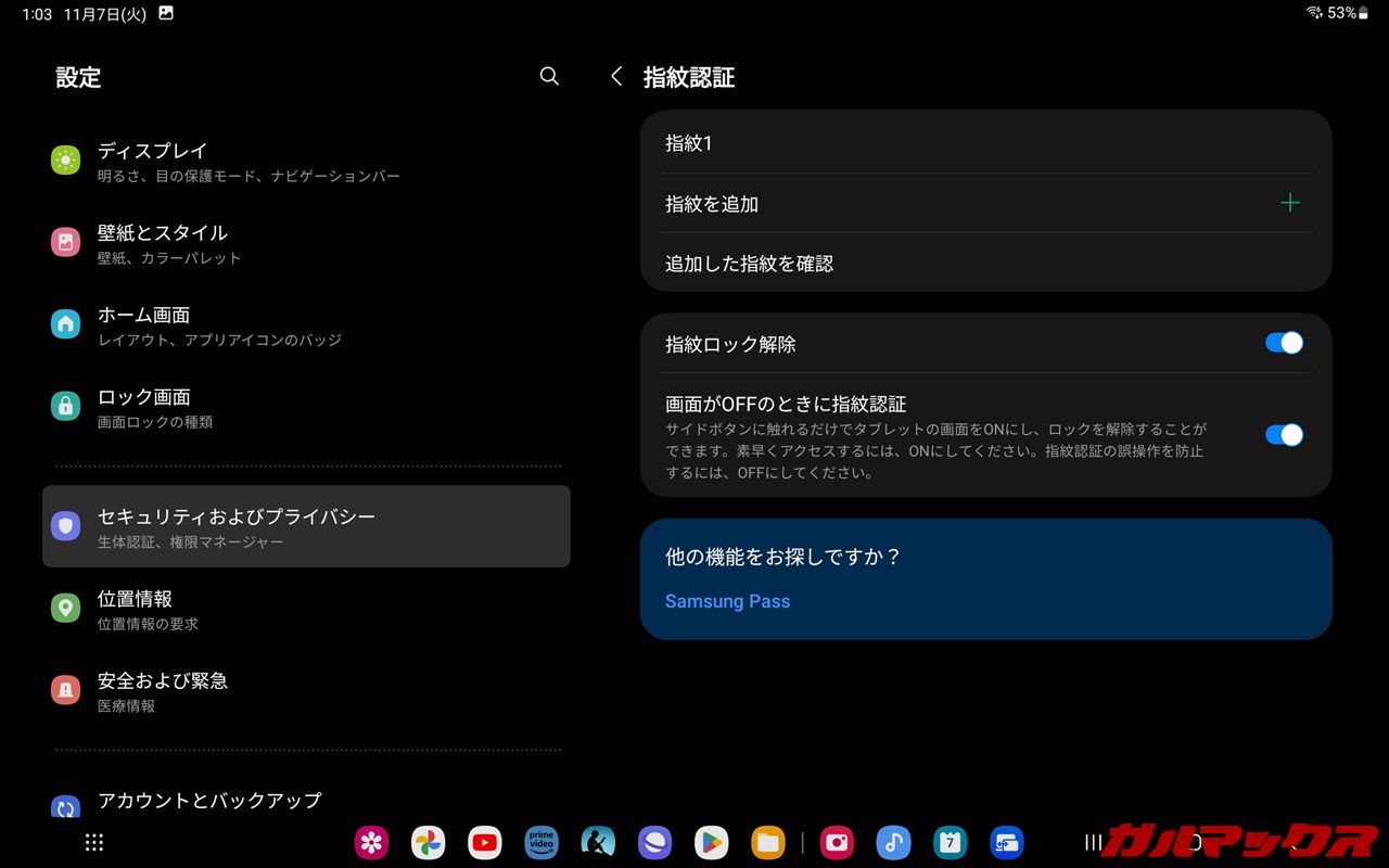 ▼あと「触れるだけで認証」「押してから認証」という切り替えも対応しています。持ってるときにうっかり指が触れてしまい誤認証ってのを防げるのも高評価!さすがOne UI。↓
