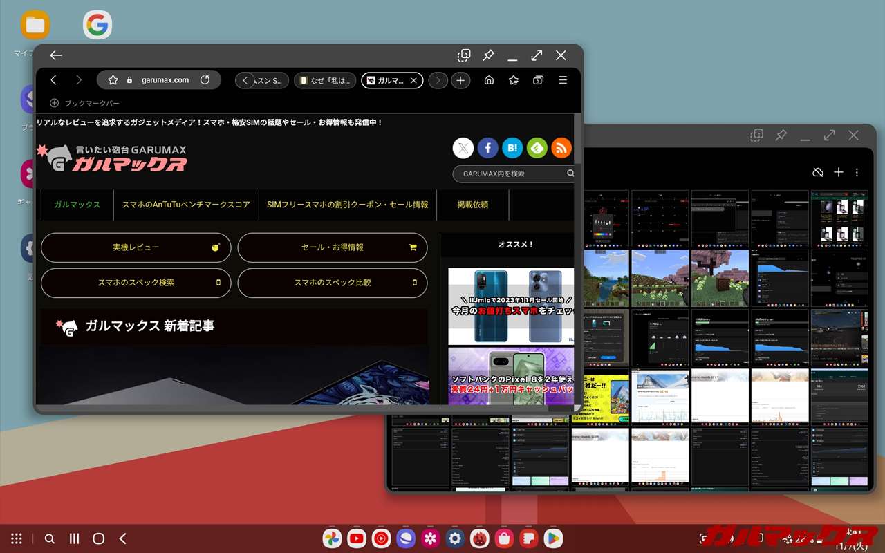 ▼またそいつをグーッとドラッグ&ドロップすればすぐに分割起動できるってのはスッゲー便利。大画面だしマルチタスクもはかどるんすよね。↓