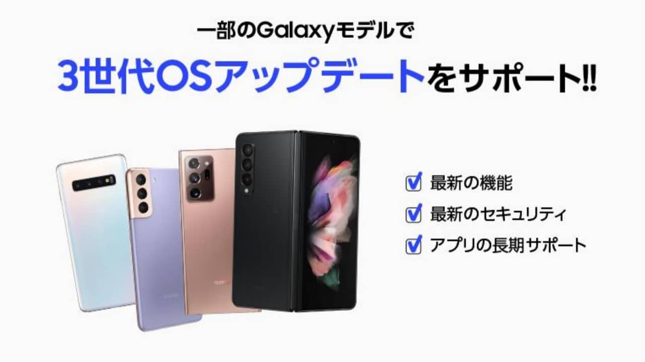 PRTIMESによれば、SAMSUNGは対象のGalaxyモデルにて3世代のOSアップデートを提供するとのことです!