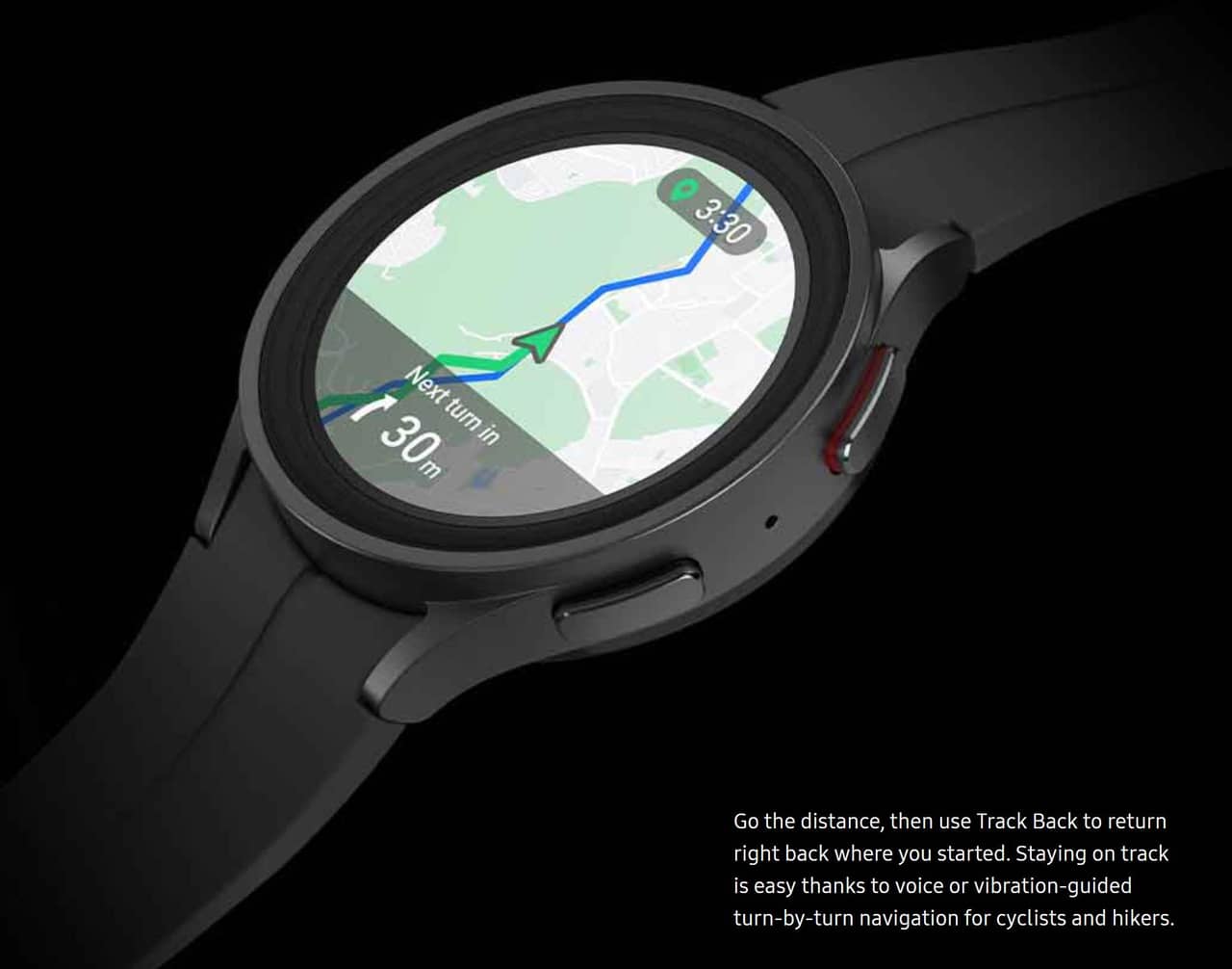 ▼Galaxy Watch 5では対応していないルート表示も対応しています!ハイキング・サイクリングでは予めルートをダウンロードしておくことで、走行経路を表示できるんだそう。帰り道もしっかり案内してくれるとのことで安心ですな(`・ω・´)。↓