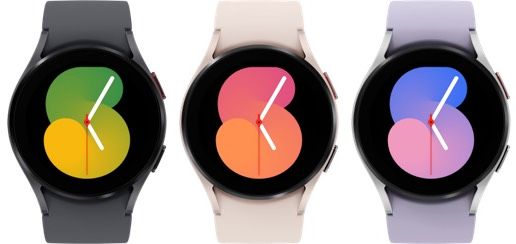 ▼Galaxy Watch 5はアルミニウム製ボディとなっており、さらに40mm、44mmの2サイズが用意されています。こちらは小型な40mm版で、カラーはブラック、ピンク、パープルと可愛らしいラインナップ。重さは28.7gです。↓