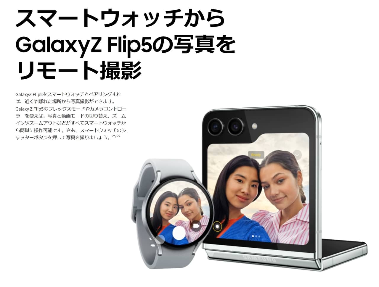 ▼その他、スマホがOne UI 5.1以降のGalaxy Sシリーズ、Zシリーズ、Noteシリーズであれば遠隔シャッター機能も対応しています!遠隔シャッター自体は普通のスマートウォッチも対応しているんだけど、こちらはプレビュー、ズーム操作などが出来るようになっているというワケ。↓