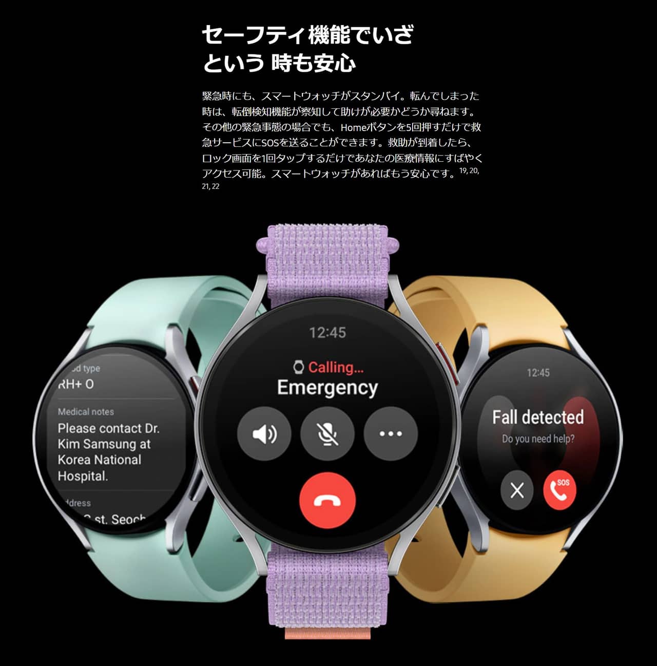 ▼エクササイズ、健康管理測定も対応は勿論なんですが、転倒を検出して緊急通報を発信できるという機能があるのも特徴!転んで動けなくなったときにすぐSOSを発信できるようになっています。↓