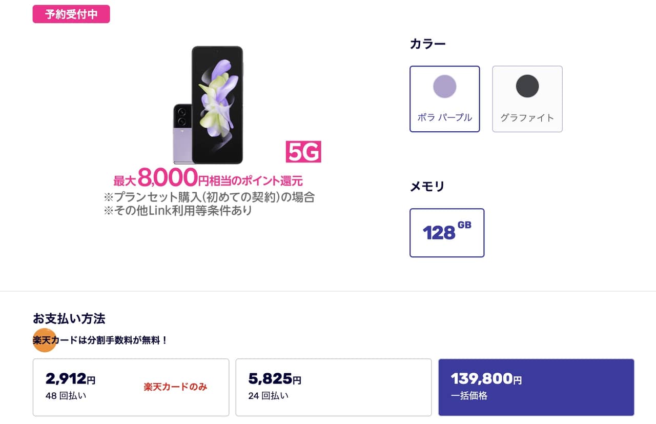 楽天モバイルのGalaxy Z Flip4が謎に安いッ!さらに8,000PT還元だと?!
