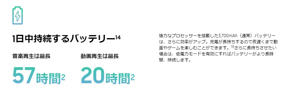 ▼バッテリー容量は3,700mAhと4~5000mAhが主流な中では小さめですが、SoCの電力効率が良いので個人的には結構電池持ちに期待してる!↓