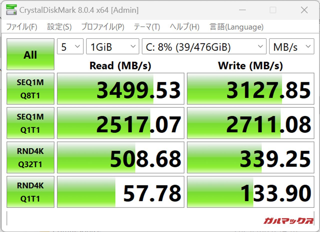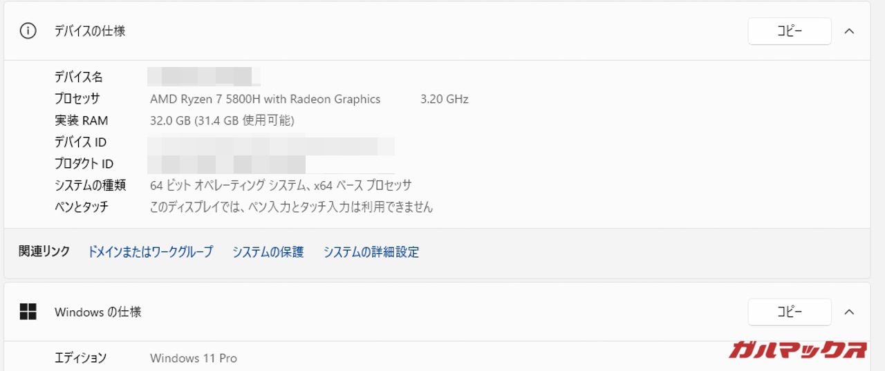 Ryzen 7 5800Hは2021年リリースの型落ちCPUですが、性能自体は高いので普段使いでの不満は全く無し。非常にサクサクと軽快に動いています。ストレージの速度も高速なので、アプリの立ち上がりも速い!