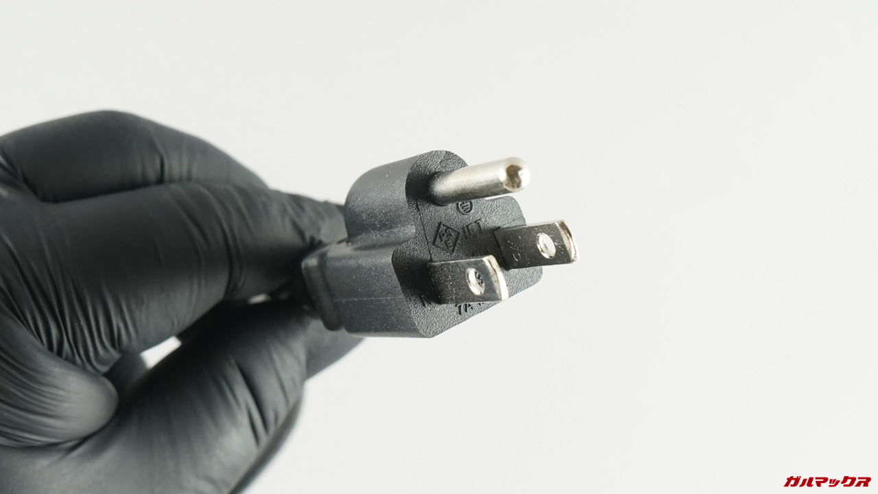 ▼そうそう、電源コードのプラグはアース棒があるのでコンセント形状が合わない人は変換アタッチメントを準備しておきましょう。↓