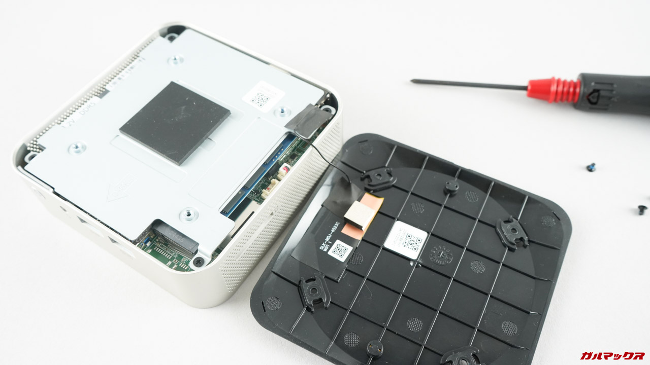 底蓋を取るには強力な粘着テープで固定されているゴム足を全て取り払う必要があるので頑張って外しましょう。