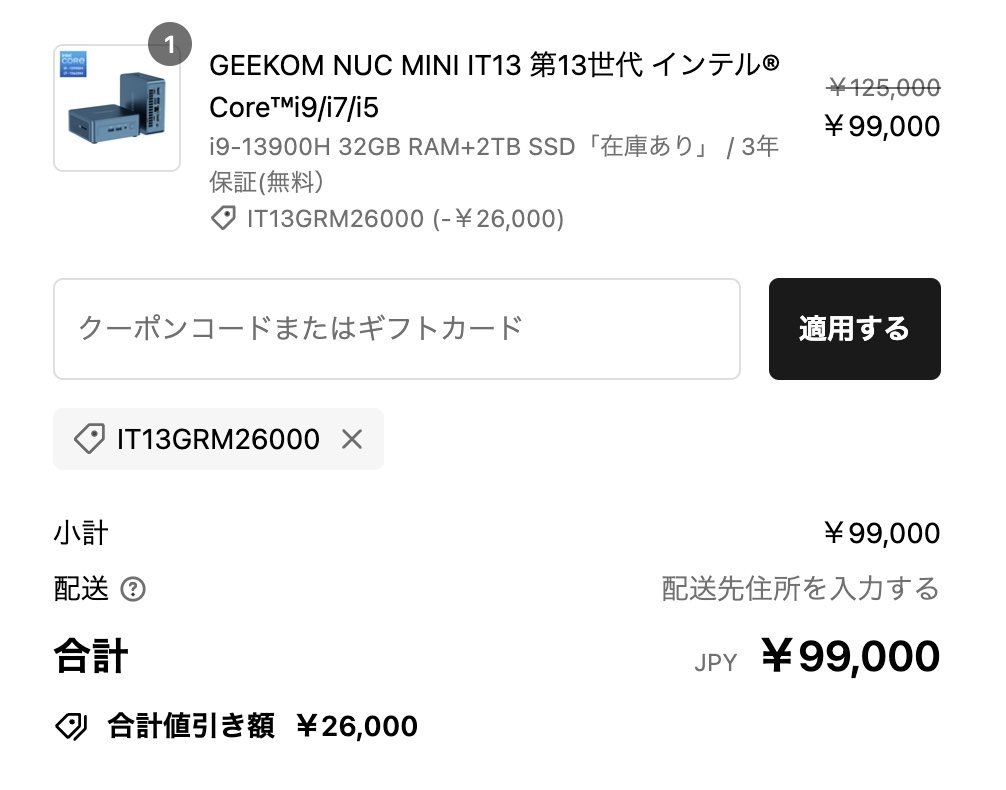 i9-13900HのGEEKOM IT13が10万円切りになるクーポン配布します