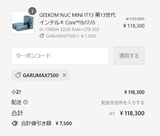 ▼3番目に試すGEEKOMクリスマスクーポンは以下!レジ画面で以下のクーポンを適用で120,800円↓