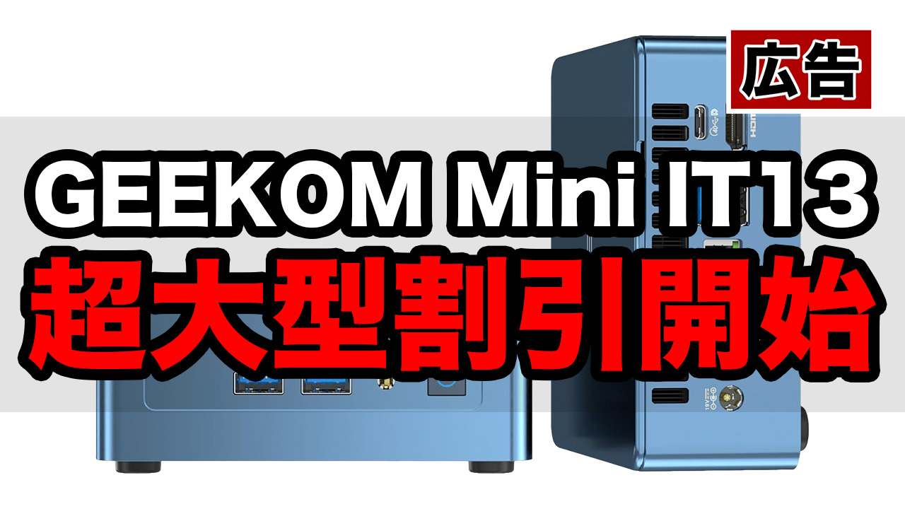 13世代Core i9ミニPC「GEEKOM Mini IT13」が大幅割引で激安に。2月19日まで