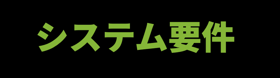 - Direct 11をサポートするGPUまたはNVIDIA GeForce 600シリーズ以降、AMD Radeon HD 3000シリーズ以降、Intel HD Graphics 2000シリーズ以降