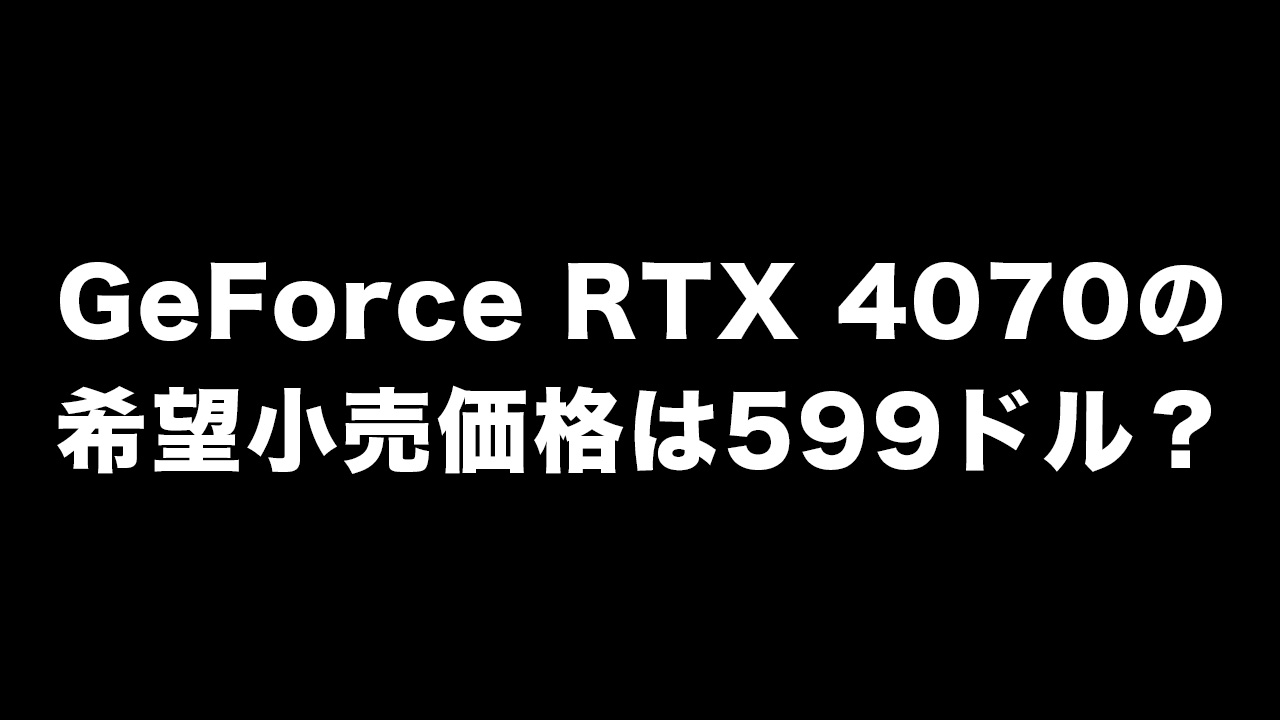 それによると、GeForce RTX 4070(Ti付きではない通常版)の希望小売価格が599ドル(約8万円)に設定されたとのこと。