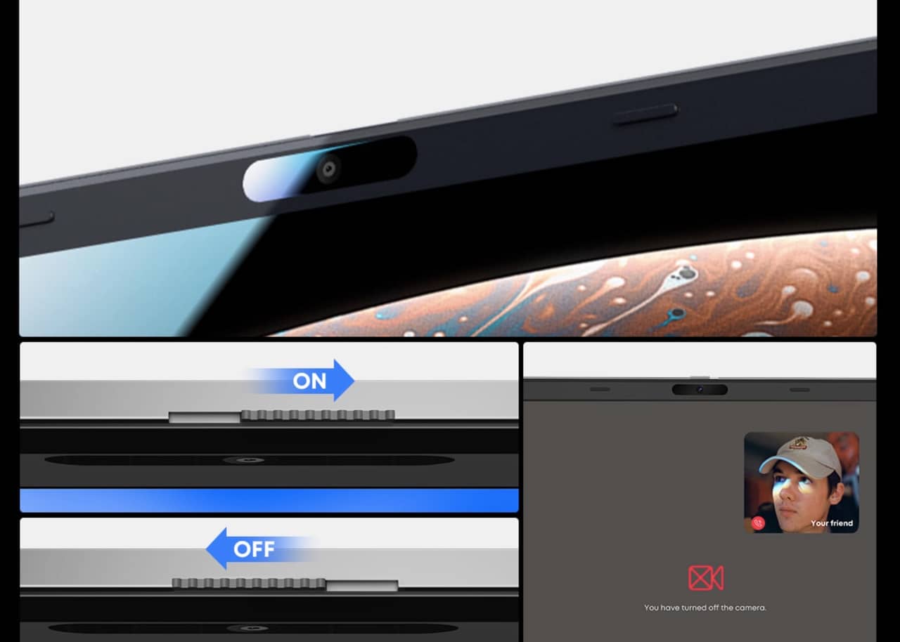 ▼面白いギミックとしては、インカメラが物理スイッチ仕様なところ!でもこれ、オフのときにはカメラも物理的に塞がるのかな?ってか、そうじゃないとあまり意味ないと思うけど。(追記:物理的にカメラが塞がることを確認しました)↓