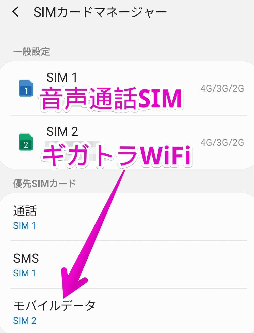 音声通話SIMとギガトラWiFiのSIMをスマホに挿して設定すると完成