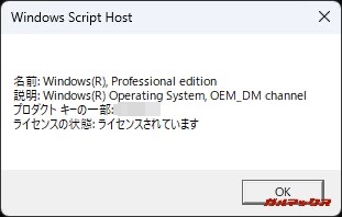 ▼GMK NucBox K10でライセンスのチェックしてみたところ、OEMライセンスと一般的なライセンスがしっかりと適用されていました!↓