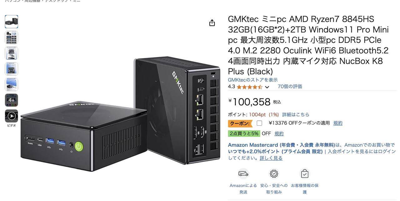 ▼ちなみにですね、これ見て下さい。日本AmazonでGMKtecが販売している同じモデルです。↓