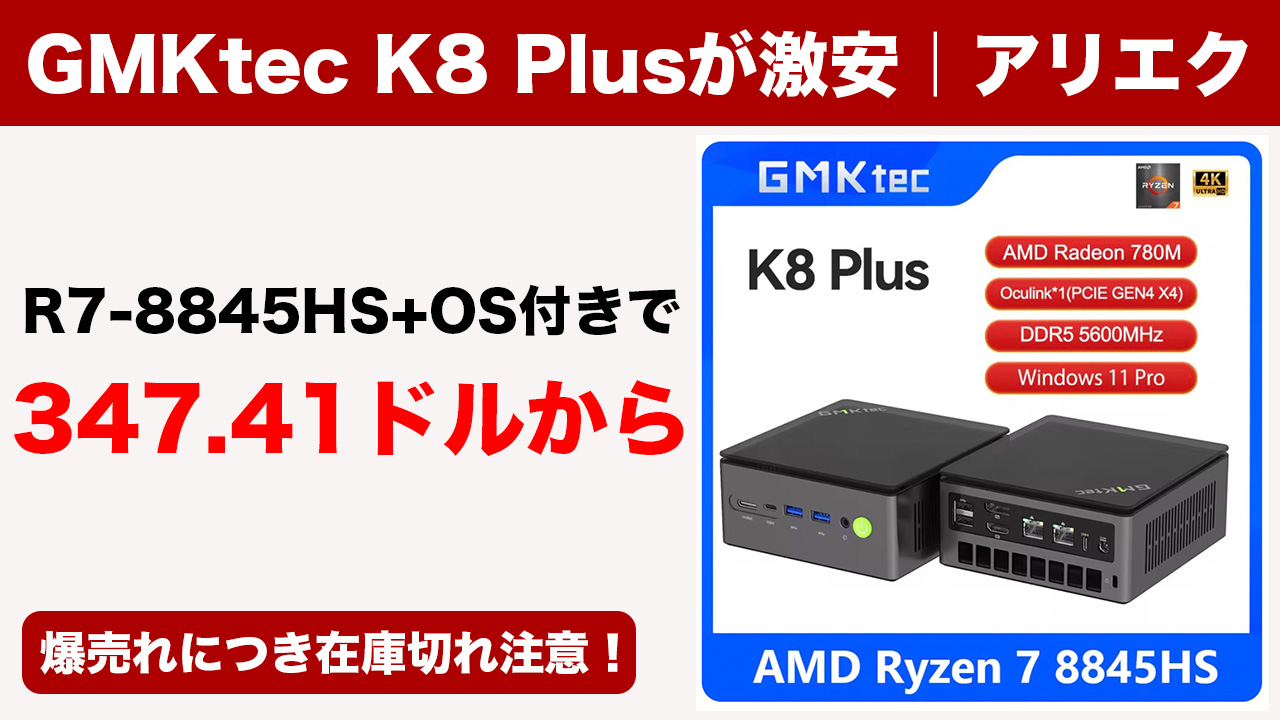 GMKtecのミニPC「K8 Plus」安すぎるんだが!Ryzen 7 8845HS搭載OS付きで347.41ドルから