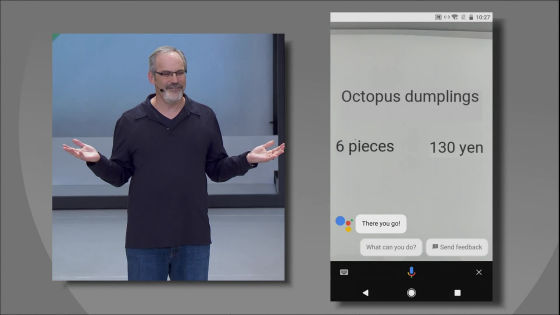 でも、知らない料理名だったら、名前が分かったところで”どの様なものか”が分かりません。Google Lensでは更に一歩先をゆくAI機能との連携で「これは、どのようなものですか?」と話しかけると、Google Assistantが料理の写真などを教えてくれます。