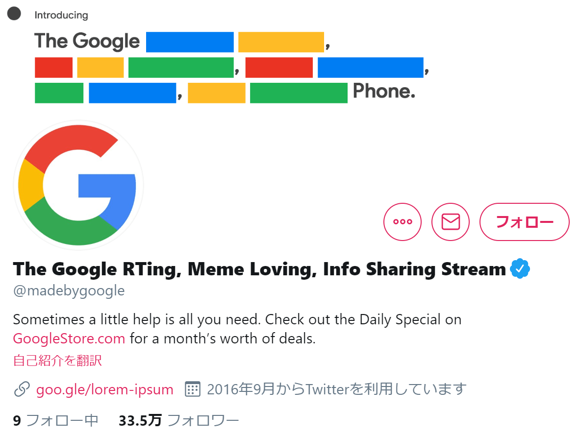 Googleの公式Twitterのヘッダーとプロフィール、URLが更新されました。