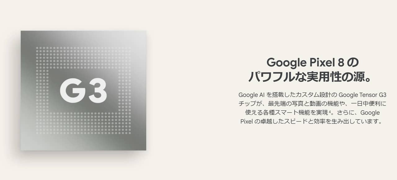 | 参照元 | 【公式サイト】Pixel 8 – google.com |