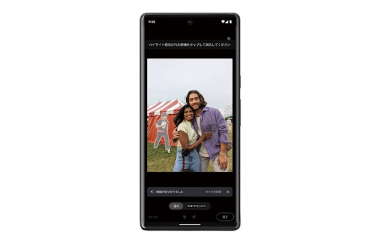 また、Googleスマホと言えば高度な編集機能を搭載しているのも特徴の一つ!CMでフワちゃんが写真に写り込んだ監督を「消しゴムマジック」という機能で消し去るシーンがあったじゃないですか。あれ、今までは一部のPixelスマホでしか使えなかったんですよね〜。