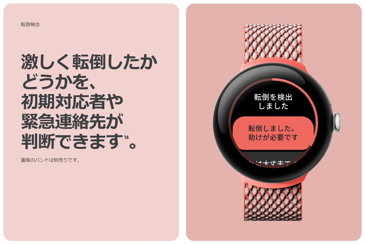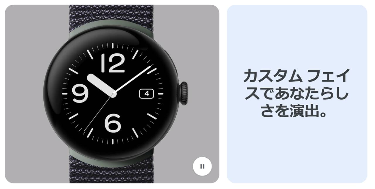 ▼Pixel Watch 2のデザイン自体は先代とほぼ変わらない丸みを帯びたデザインとなっておりカラー、ブルー、ホワイト、グリーン、ブラックの4色。また5ATM防水にも対応しており水没してもヘッチャラです。↓