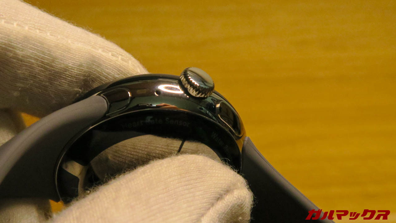 ▼個人的には一番気に入っているのがこのリューズことクラウンボタンです。やっぱりあると全然操作性が違う。回したときのカチカチっていう感触も楽しい!メニューや通知内容がスクロールできるので、画面を触らなくて済むのが便利。↓