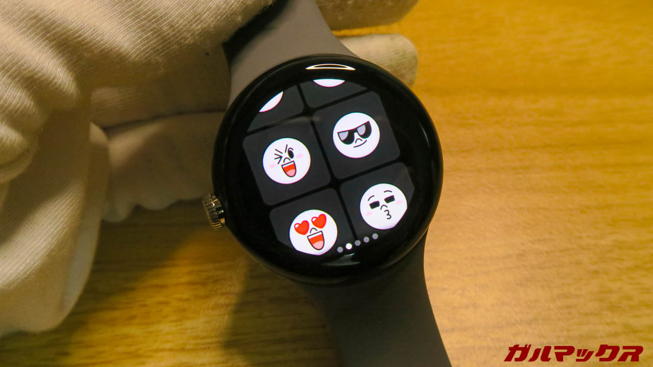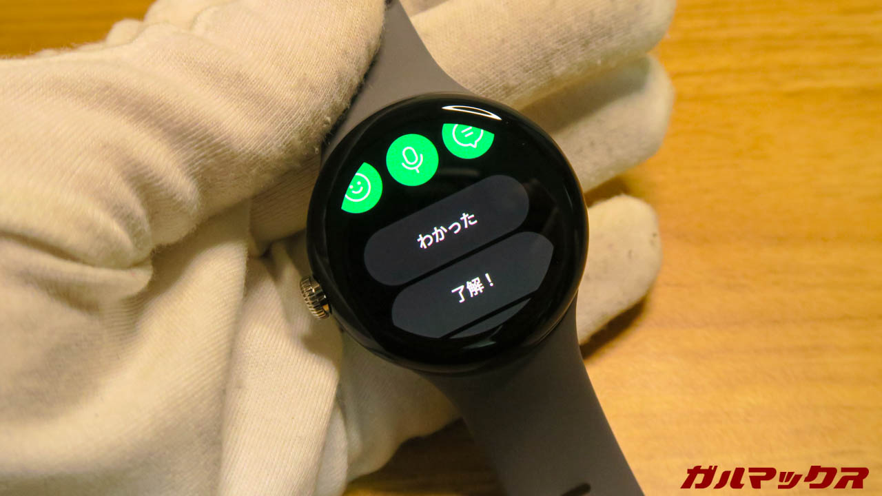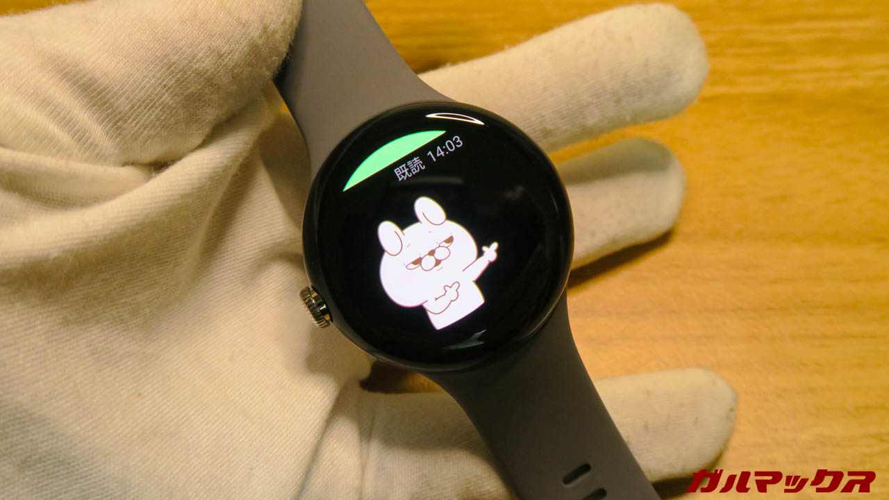 ▼そのおかげでLINEのトークをPixel Watch単体で見られます。スタンプも表示可能。画像やボイスメッセージは非対応でしたが十分!↓