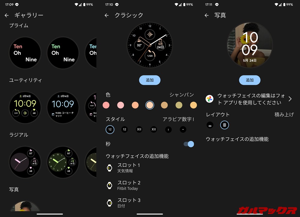 ▼Pixel Watchの場合はクラウンボタンに合わせた画面の向きに変更可能。なので右腕装着で左にクラウンを配置、ということも出来ました!↓