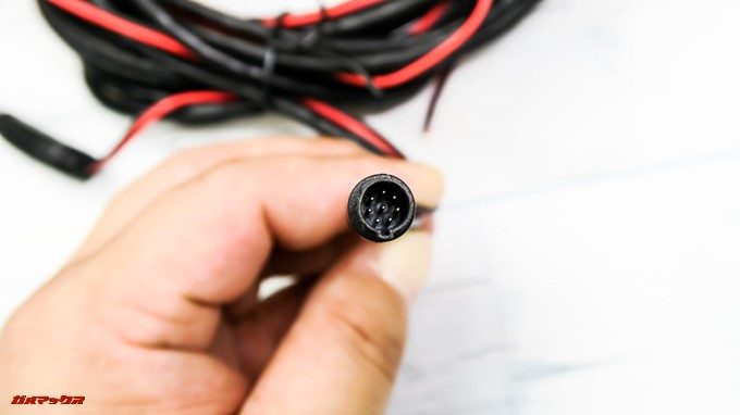▼GoSafe S36GS1に接続する端子(上側)とバックカメラと接続する端子(下側)↓