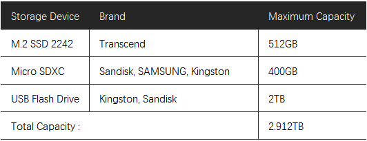 | Hard Disk Specifications | M.2 2242(22×42mm) | |