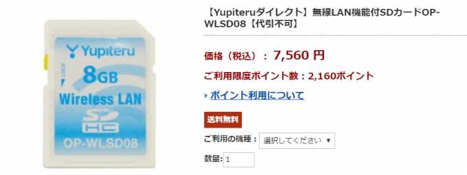 ▼GWR403sdはオプションとして無線LAN機能付きのSDカードを7,560円(ityクラブ会員は6,480円)で販売中。↓