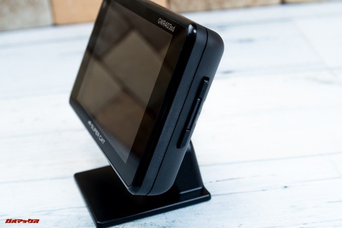 本体の側面に給電用の端子が備わっている場合、見た目的にもケーブルが見えるのでスッキリしませんが、背面に給電用の端子が備わっているGWR403sdは車載した時に非常にスッキリした配線這わせが可能です。