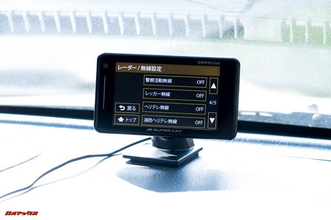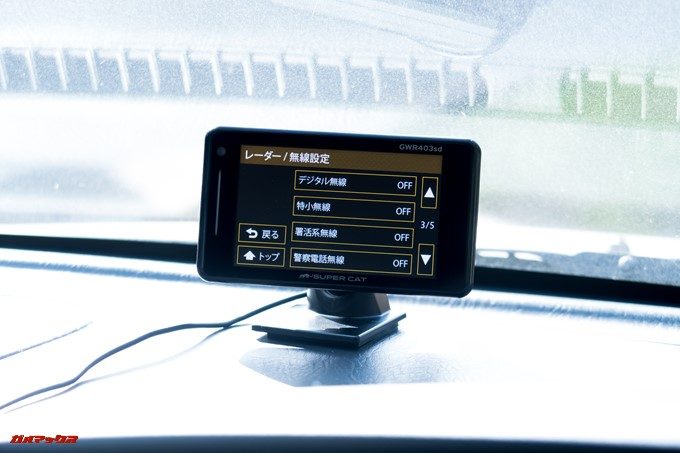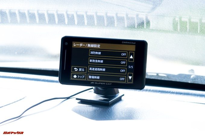 ▼レーダー/無線の設定項目ではレーダー波をGWR403sdがキャッチした時の動作を設定可能。こちらも柔軟にオン・オフできるので、必要な機能だけ厳選して利用する事が可能です。↓