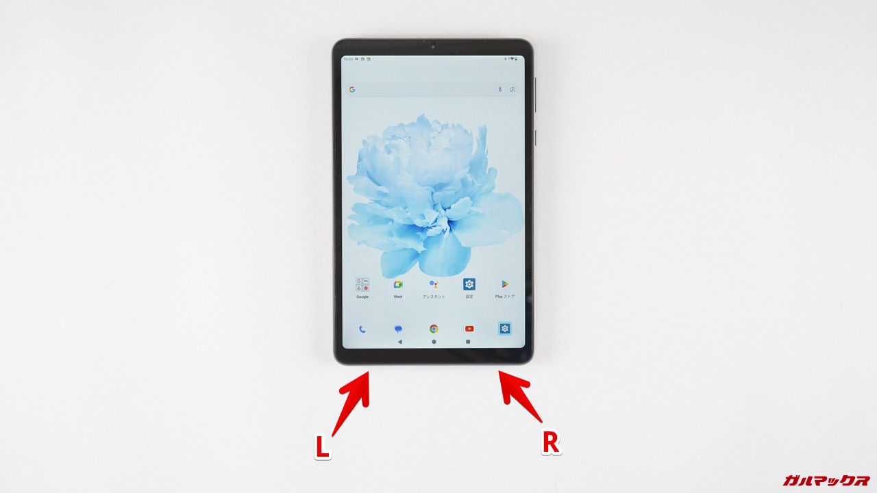 ステレオスピーカー搭載は嬉しいんですが、横持ちでステレオになる配置が好みという人は注意ポイントです。(僕は動画を横持ちで見るので横持ちに最適化している方が好みでした。残念)