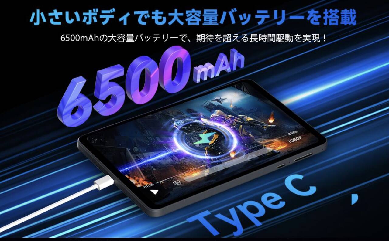 ▼バッテリー容量は8.4インチだとたっぷりサイズの6,500mAhを搭載!Good!↓