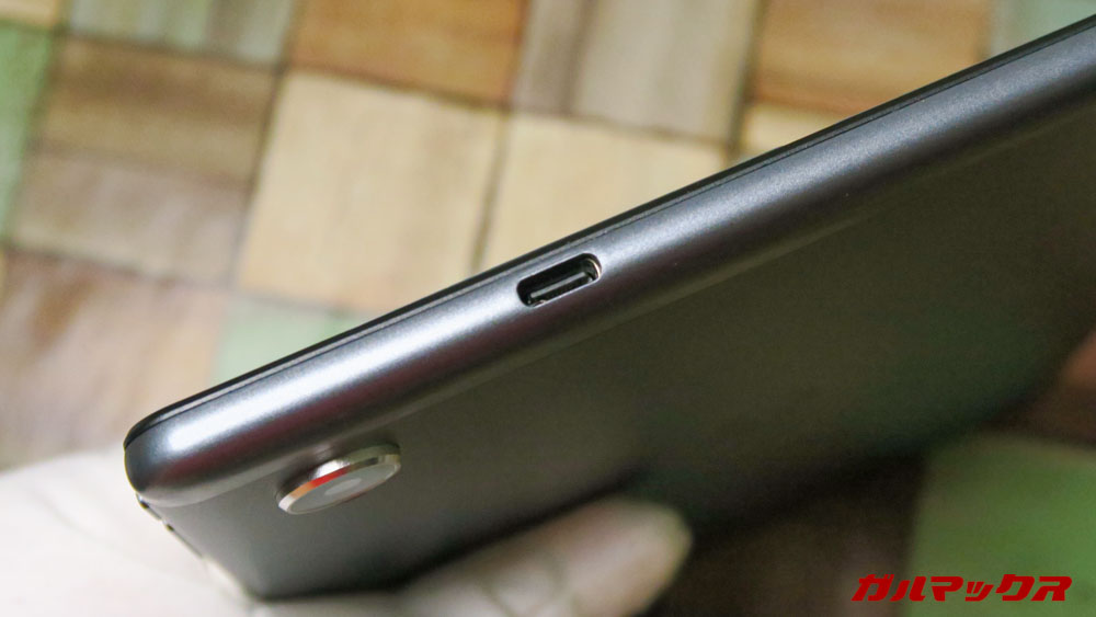 ▼上部にType-C充電端子!エントリーモデルでもType-C採用はケーブル節約にもなって嬉しい。↓