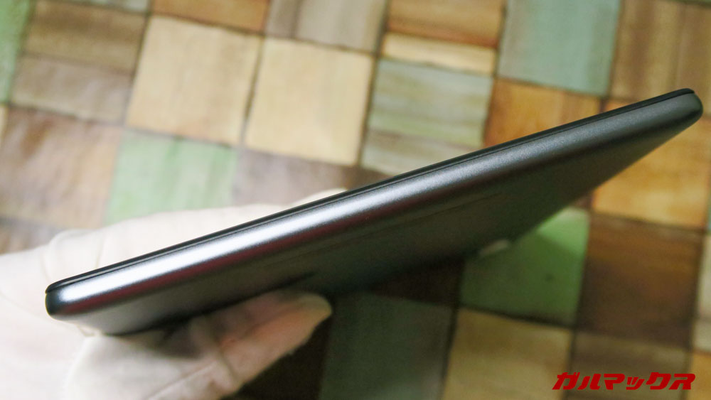▼質感自体は上出来。この手のタブレットでは珍しくないですが、グレーカラーでメタルな質感。触るとヒンヤリきます。手触りは良いので満足!↓