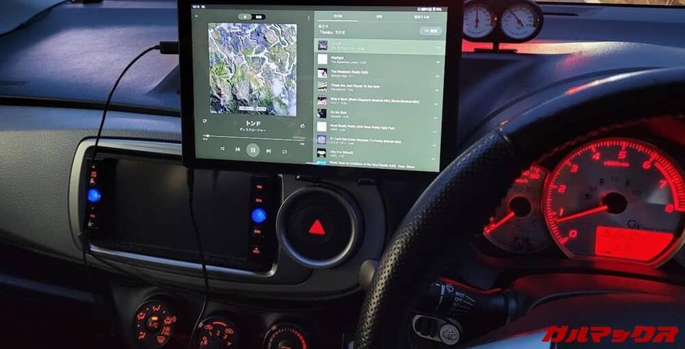 ▼GPSも搭載しているおかげでカーナビ用途としても個人的に満足です!コンパスは無いので自分が向いている方角は出ませんでしたが、十分です。車載用でもしっかり活躍できてとても良い。あとこの場合だとAUXと充電端子の配置もちょうどいいですね。↓