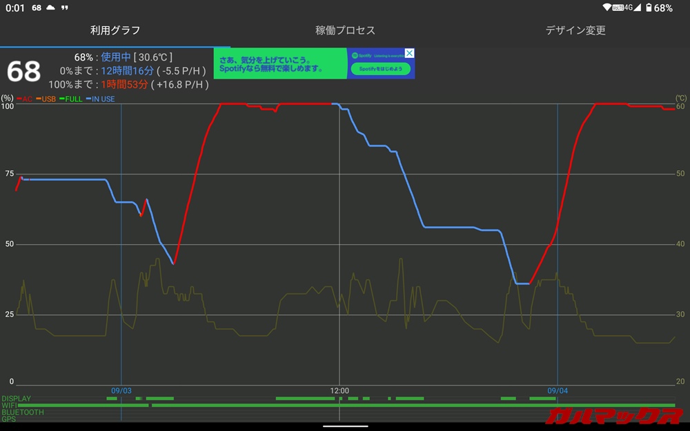 HEADWOLF WPad 1のバッテリー持ちは微妙。ですが筆者としては十分。家は充電できるんで気にならないし、車載カーナビで使ってたら1時間で20~25%ぐらいは減ります。が、こちらもちょっとした外出程度なら全然耐えられるし及第点!