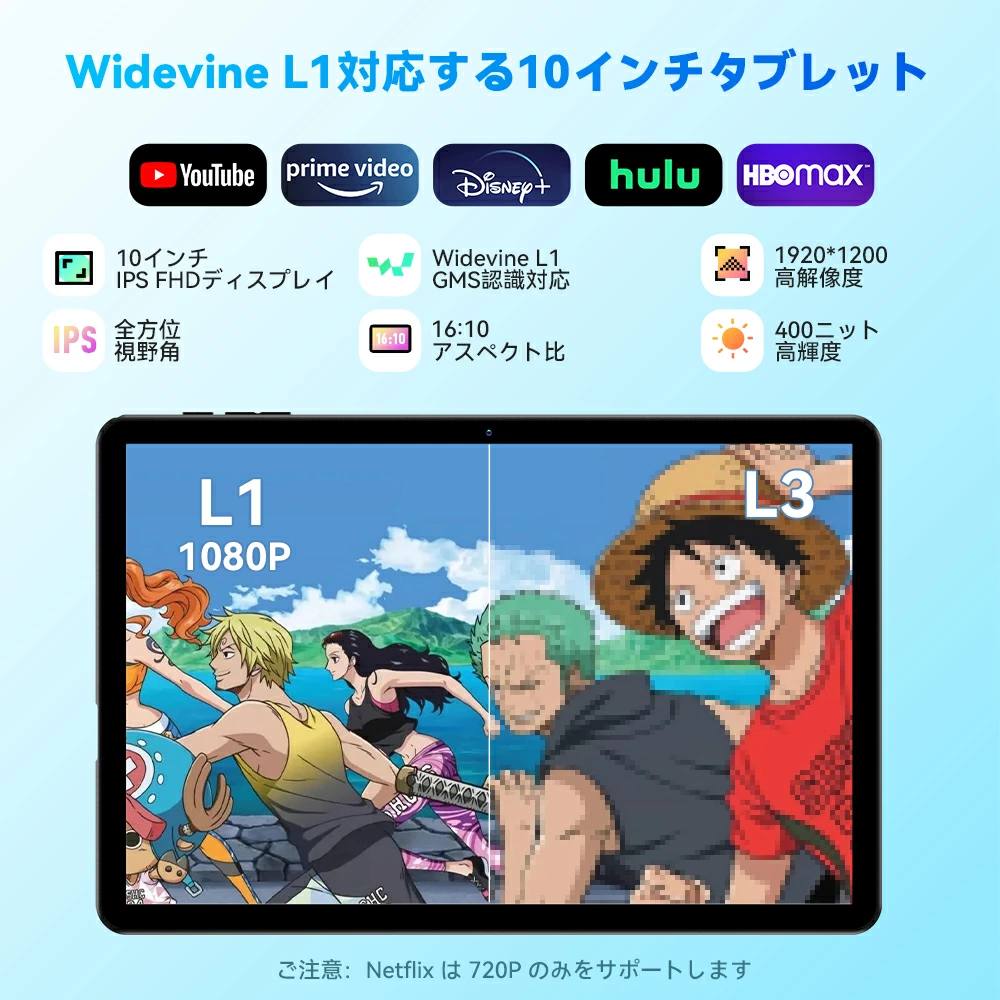 ディスプレイサイズは10インチで解像度もWUXGAクラスとなっています。Widevine L1も対応なので著作権コンテンツの動画視聴が高画質で楽しめるってのも魅力!Netflixでは720P解像度までだそうなのでその点は注意ですが‥価格を考えるとかなりいいスペックではないでしょうか。